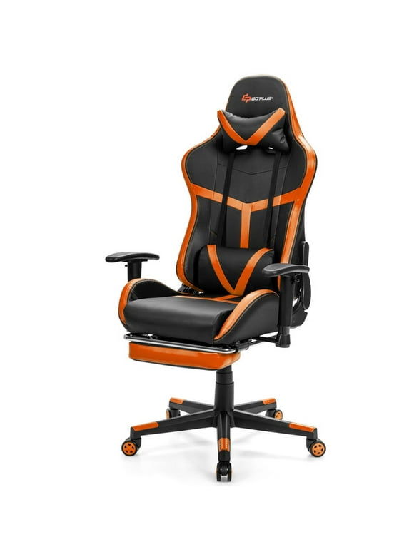 Costway Massage Gaming Chair Reclining Racing Chair with Lumbar Support Footrest Orange.